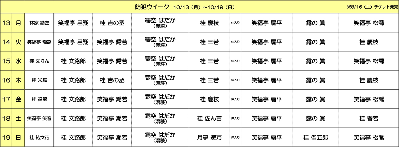 日時:2025年10月13日(月)〜10月19日(日)