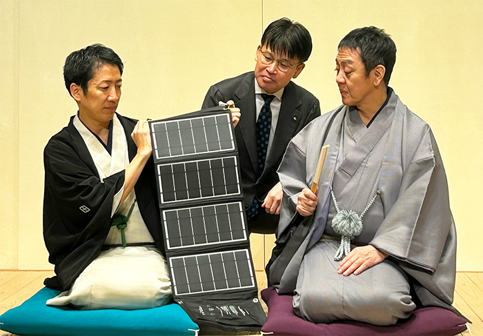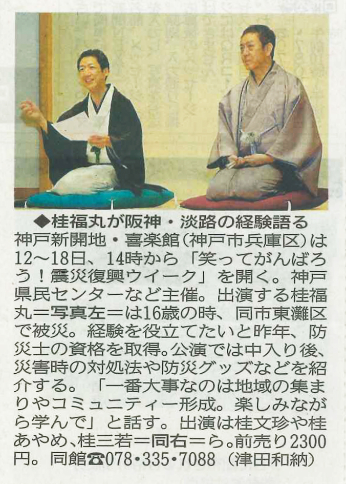 落語で笑って元気になっていただき、防災トークでは大きな被害を受けた新開地で、