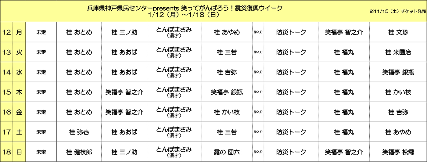 「兵庫県神戸県民センター presents 笑ってがんばろう! 震災復興ウィーク」を開催します!