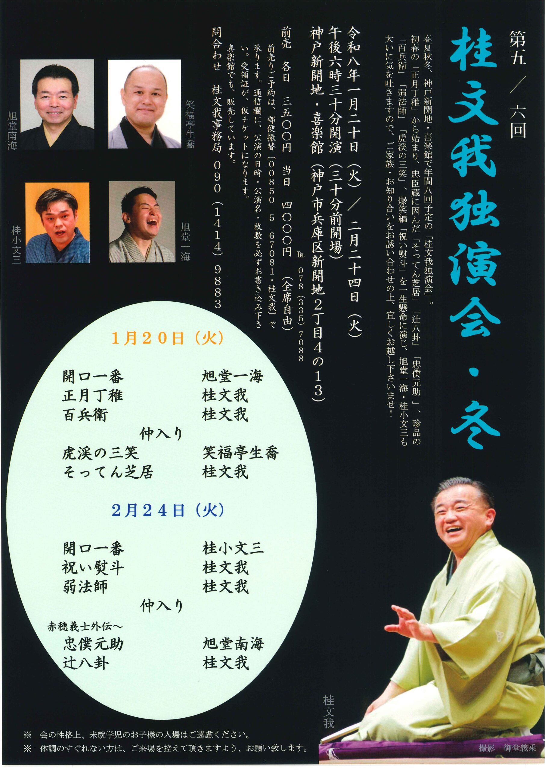 お問い合わせ先:桂文我事務局(090‐1414‐9883)